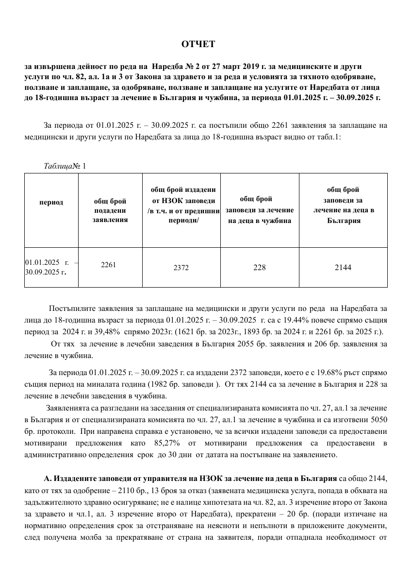 ЦФЛД | Отчет на НЗОК за лечение на деца в България и чужбина за периода 01.01.2025 - 30.09.2025.pdf GovAlert.eu/25Rb [PDF]